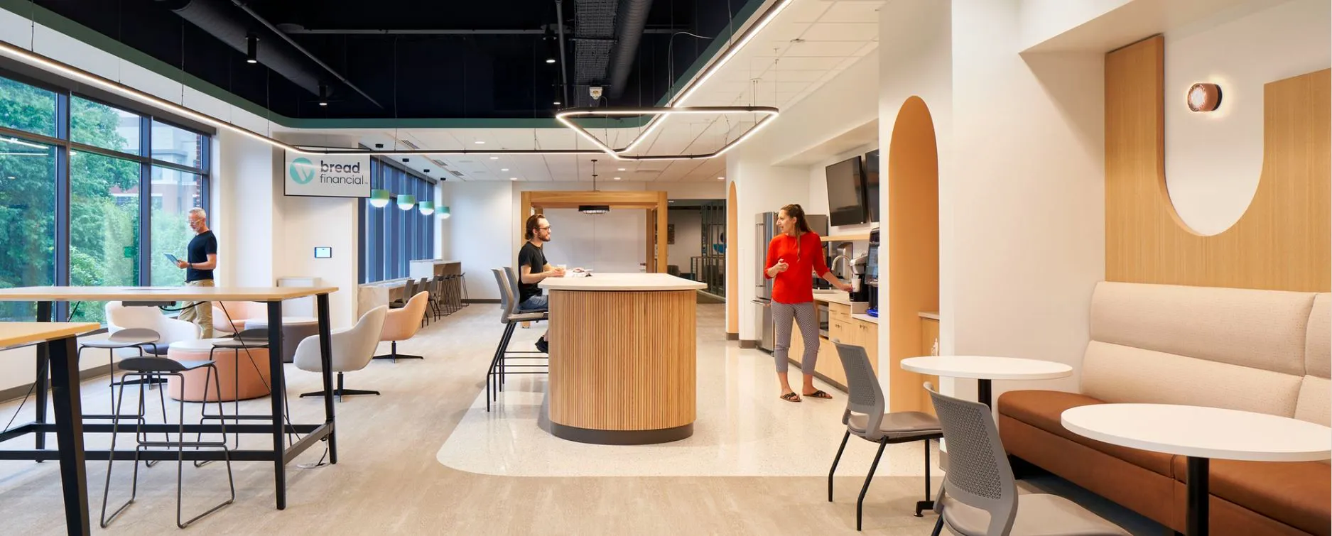 Bread Financial, a leader in data-driven payment, lending, and saving solutions, was looking to optimize their campus footprint and upgrade their workspaces to increase efficiency and engagement among teams. They turned to Unispace’s integrated approach to help them understand how their people wanted to work and build a space that would attract and retain talent while meeting business goals.
