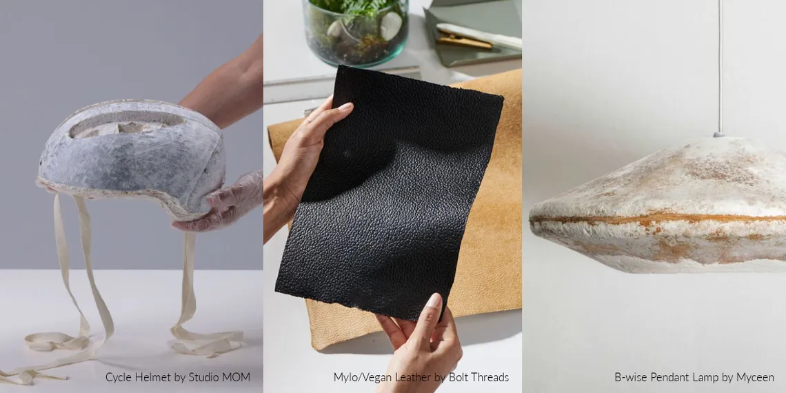 Having already made an appearance in the fashion world in the form of faux, plant-based leather (Mylo by Bolt Threads), Mycelium breaking into other industries in the form of chairs, lighting (B-wise Pendant Lamp by Myceen) and even architecture. Its unique qualities: light weight, durable, fire-resistant, water resistant, and some acoustic properties, make it highly desirable material to continue to push the boundaries of what an accepted product is, whilst being highly sustainable due to the low energy and minimal resources needed for it grow.