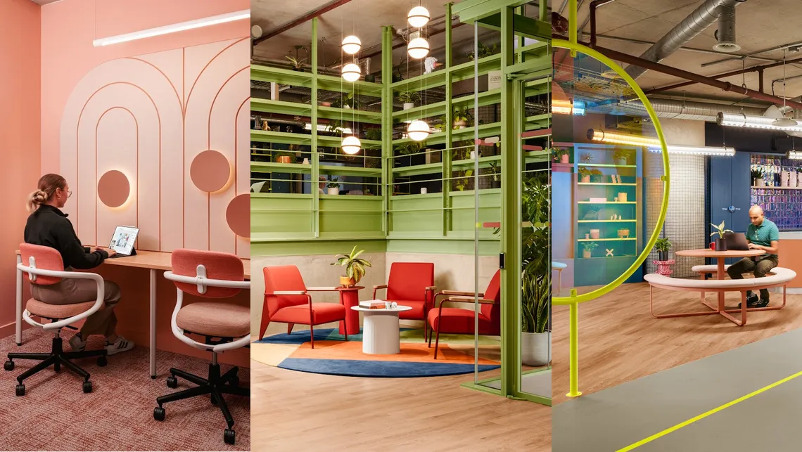 In the workplace, color can do the same. It shapes identity, reinforces values, and fosters connections. As Morag Myerscough says, “color is used as a visual language to transform spaces, to inspire and to energize people.”