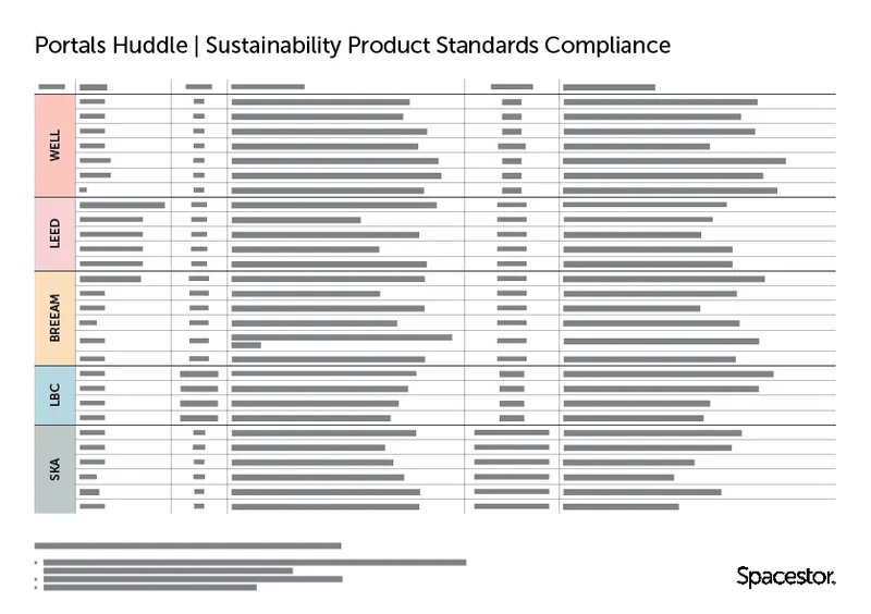 We know that navigating sustainability standards can feel overwhelming, which is why Portals Huddle comes with a downloadable Environmental Data Sheet to give you clear insight into its impact — [Download Here]. For a deeper understanding, we also provide a Sustainability Standards Compliance document—available upon request—that helps you make sense of the complex world of sustainability benchmarks, see example on the left. We encourage you to reach out to us directly to access this resource and explore how our commitment to sustainable design can support your decisions.