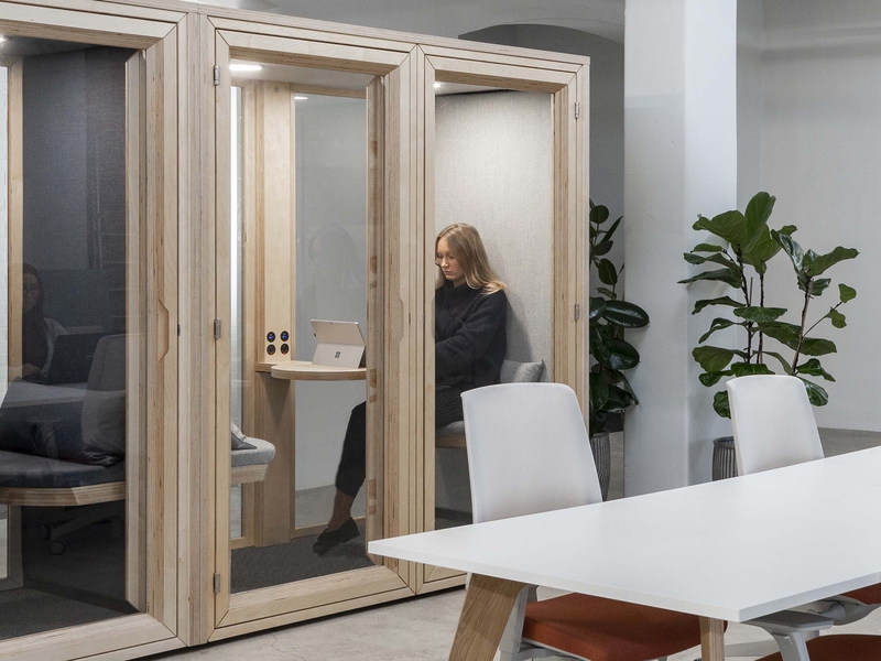 A 1-person, private booth for focus work or phonecalls