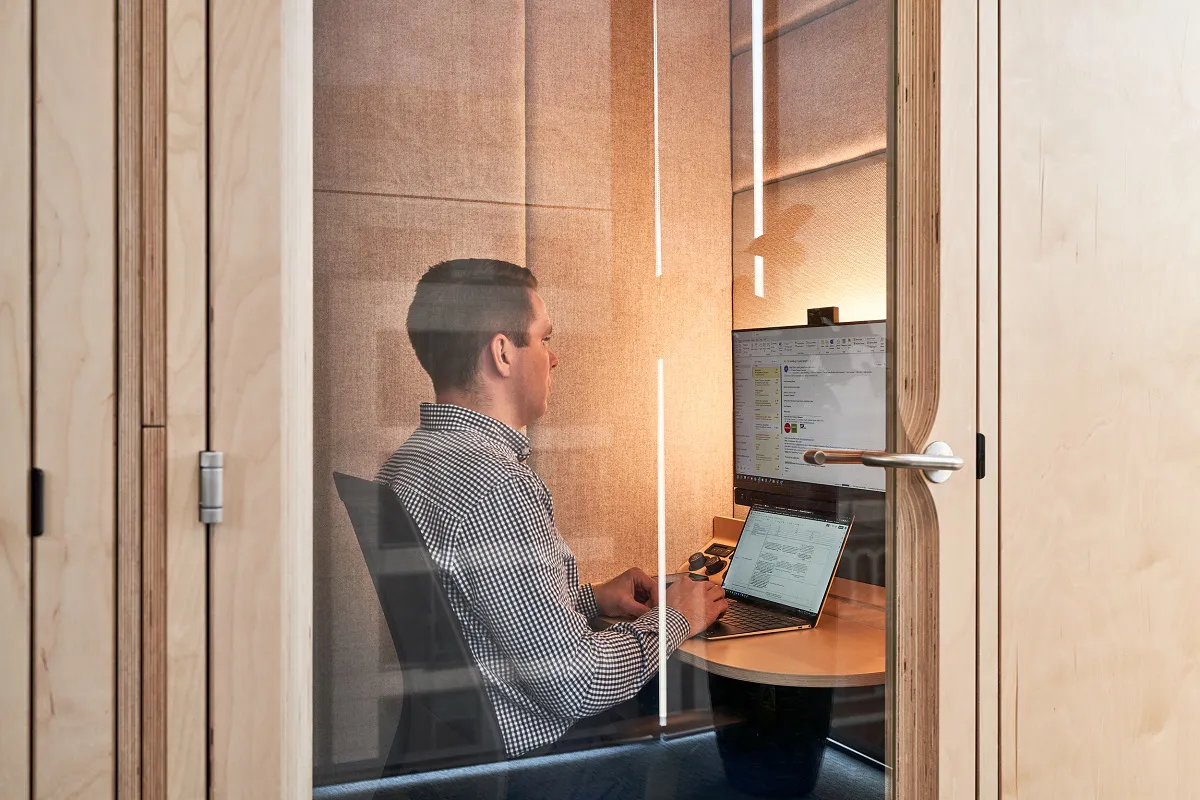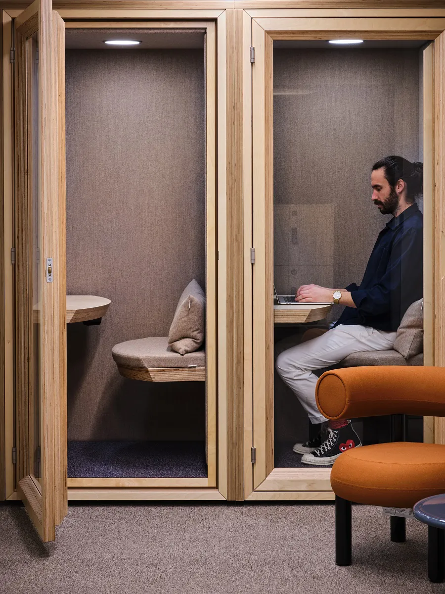 Drawing on the rich design heritage of California, the Residences range creates iconic enclosures within the workplace, providing a serene sanctuary. With five different products in the Residence family, the below gives a quick overview of the differences between them. Residence Meet is a 2-person meeting or private conversation booth; meet the others below!