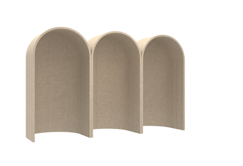 Taking influences from classical architecture, Aeonica allows the creation of forms that are timeless and instantly familiar. Using simple but distinct typologies including arches, cloisters, colonnades, rotundas, porticos and pantheons, a whole system of micro-architecture is now available to the workspace designer. A landscaping tool-kit that is distinctive, yet not highly directive.