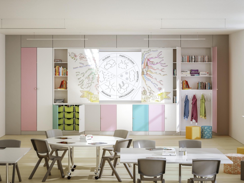 In the evolving landscape of education, the design of learning environments plays a crucial role in fostering student success. As educators and administrators seek to create spaces that support various learning styles and activities, the importance of designing the right spaces cannot be overstated. Traditionally, education spaces are very material heavy and without a proper storage solution, this can easily become a distraction to the students from their learning. The education designers of today need an aesthetic and space-efficient way of removing these distractions. Edustor is a highly functional, customizable solution which also allows for easy tech integration. It’s an organized storage system that increases student engagement by providing a distraction-free learning experience. With it’s space efficiencies alone, Edustor can increase classroom capacity. Edustor is a highly modular and adaptable system that can be easily reconfigured or relocated according to classroom use and varying teaching styles. Combined with other Storagewall products, personal storage, Recycle & Printer points or Snugglestors can be incorporated into the overall design, making the system adaptable to both student and teacher use.