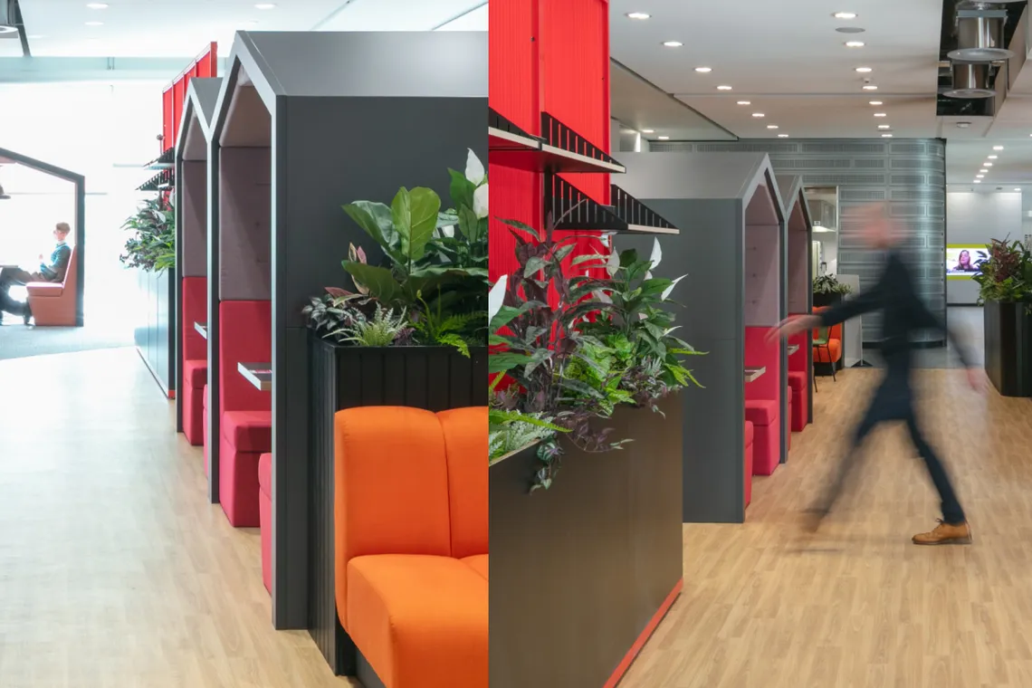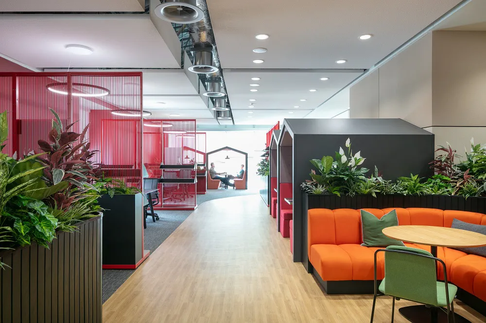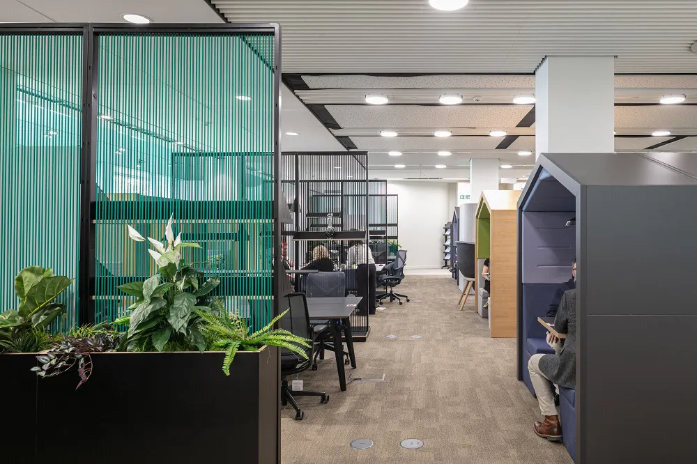 AstraZeneca recognized the importance of employee wellbeing, and this was a driving force behind the project. As well a providing a greater range of space for their people which caters to different needs among the team, they established a strong biophilic identity within the space using planters to forge a connection with nature, as well as much natural light was let in as possible.