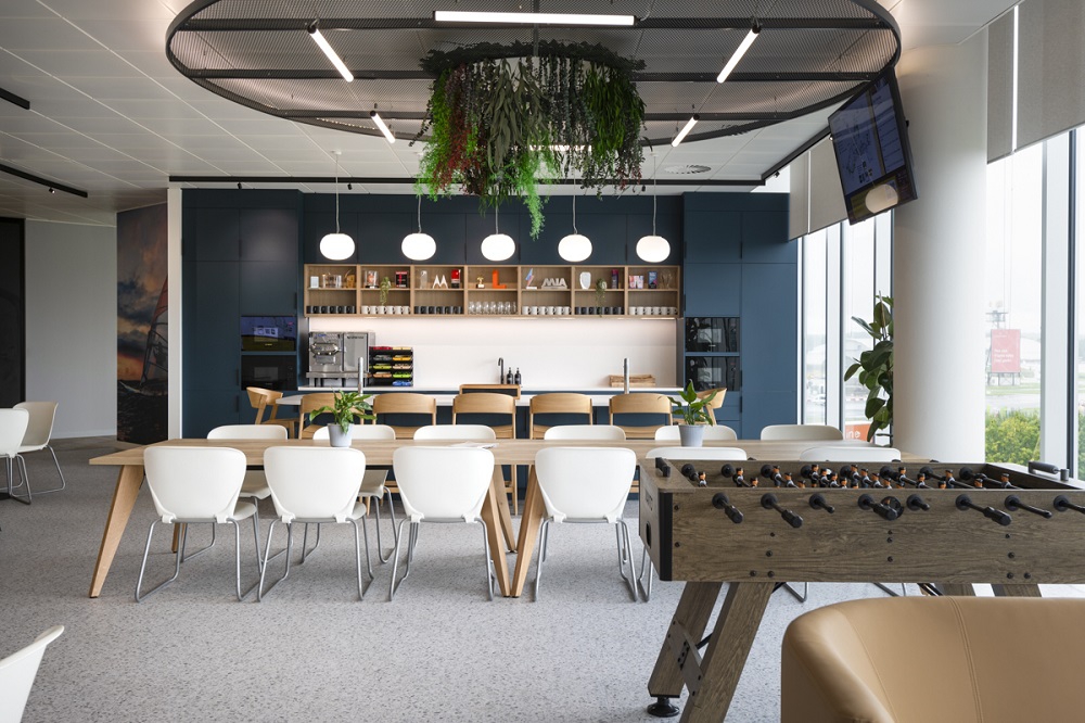 Over a floorplate of 19,800 sq ft the workplace is situated in the Farnborough Business Park and because of its two distinct wings, presented a design challenge for Area to ensure avoidance of dysfunctionality between team based in the separate wings. This was expertly resolved by the strategic positioning of amenities and refreshment points, as well as functional fittings such as the printing area, to strongly encourage collaboration, impromptu catch ups and synergy across teams.