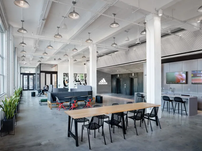 The Adidas New York City Office project transforms two floors of a historic 1936 New York City factory into a state of the art office, event, and showroom space.