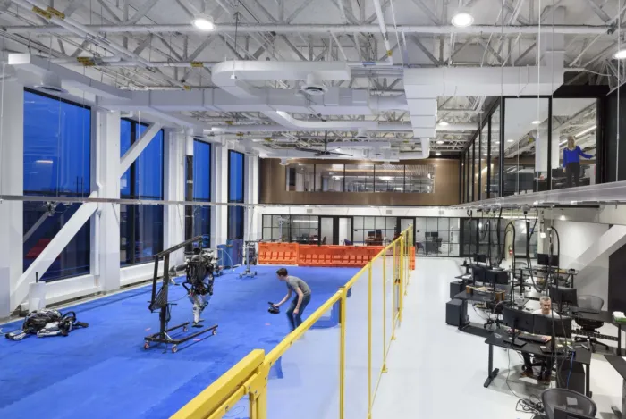 Creating a corporate headquarters that would support Boston Dynamics’ rapidly growing engineering, research and development, and customer support teams while not losing sight of what is at the core of their culture – collaboration, wellness, and connectivity – was one of the primary objectives. The laboratories also needed to be adaptable to their ever-changing environment and durable enough to withstand the activity of the engineers and robots.