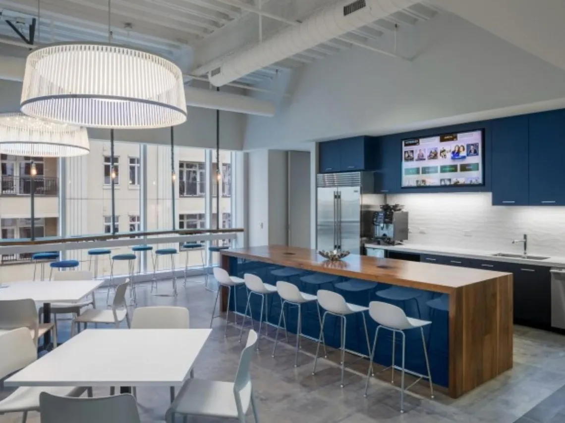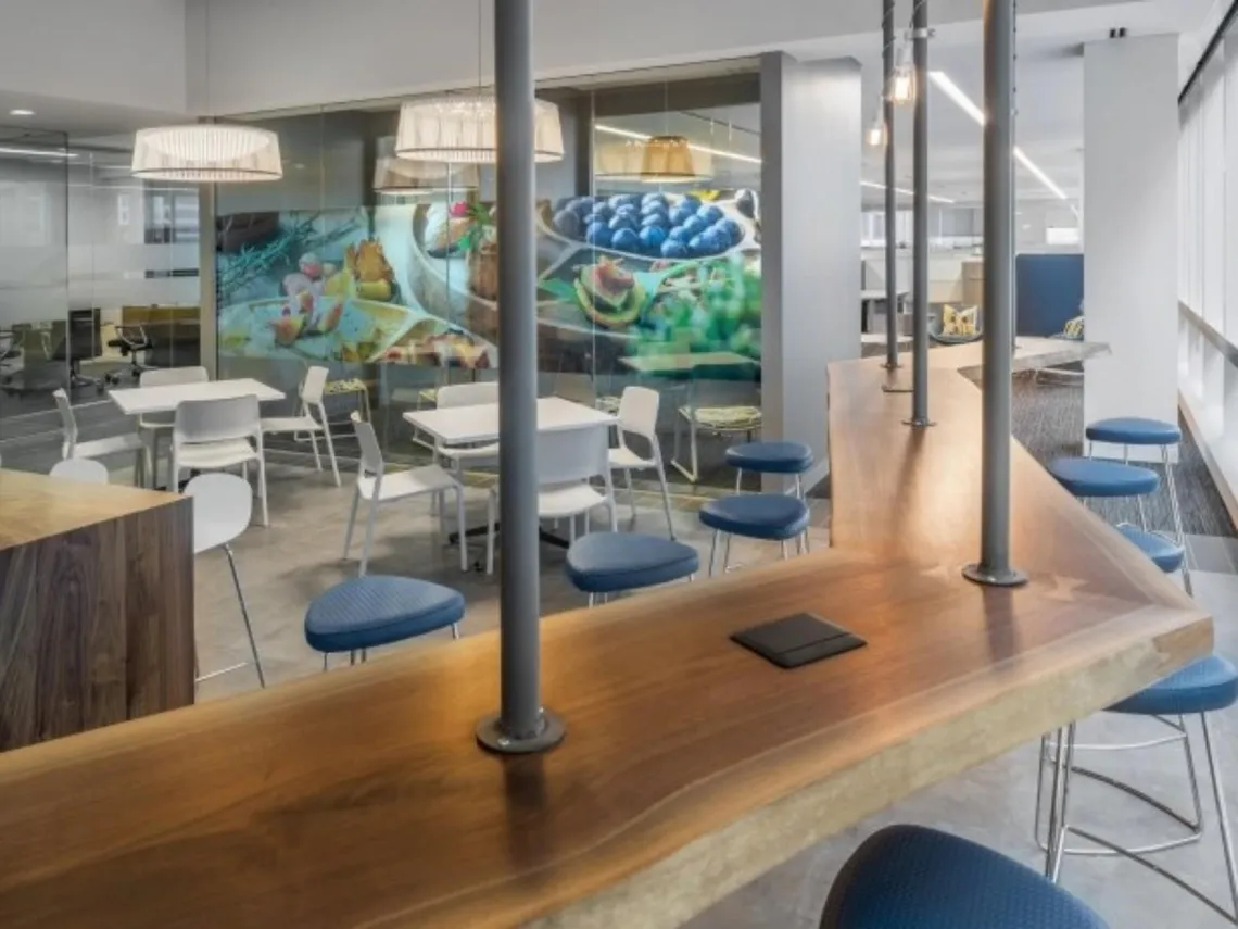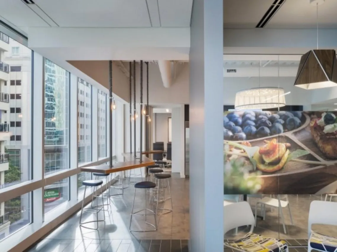 “We thought it was a great opportunity as an organization to help recruit and retain the best talent, for us to really change our perspective and be right in the heart of Charlotte” said CEO Brian Poplin. With a specialty in restaurant design, Carrie Frye Interior Design was commissioned to create an office that would represent Elior’s “business model, methodology and focus on people.”