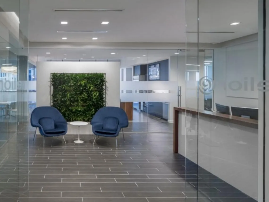 Floor to ceiling windows and an abundance of glass throughout the office allows natural light to flood into the building and the company has embraced sit/stand working for the wellness of its staff