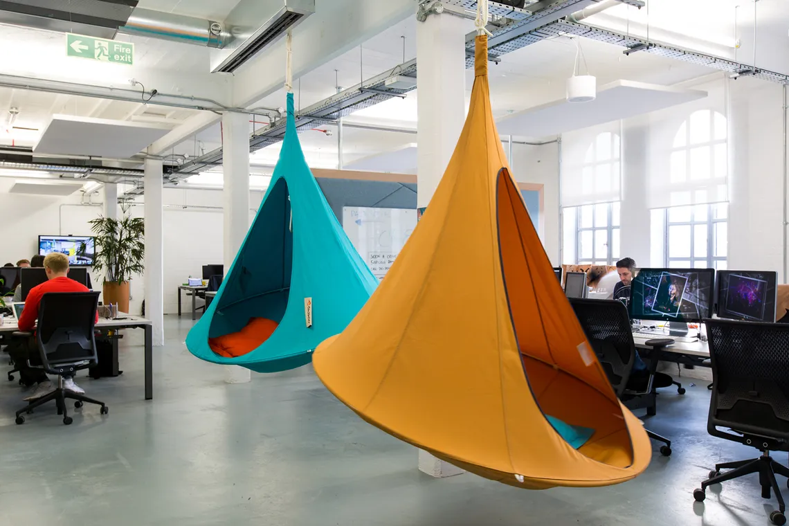 Because many of the employees spend their time at their computers, TransferWise wanted to give their workers a space where they could move around, switch desks, hide in different nooks to concentrate or relax with colleagues behind a coffee cup. The TransferWise office is a great example of a space that is designed to inspire creativity, without distracting employee’s form their work. Images from Office Lovin