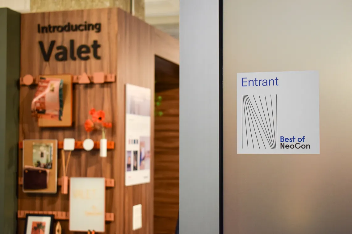 Valet garnered significant attention, with a stunning wall display within the showroom. Attendees were impressed by its functionality and beauty as they were able to experience its heuristic, hands-on playful nature. Valet's simple design and universal form is relatable as well as easy to apply to any space within a floorplate with transformation effects.