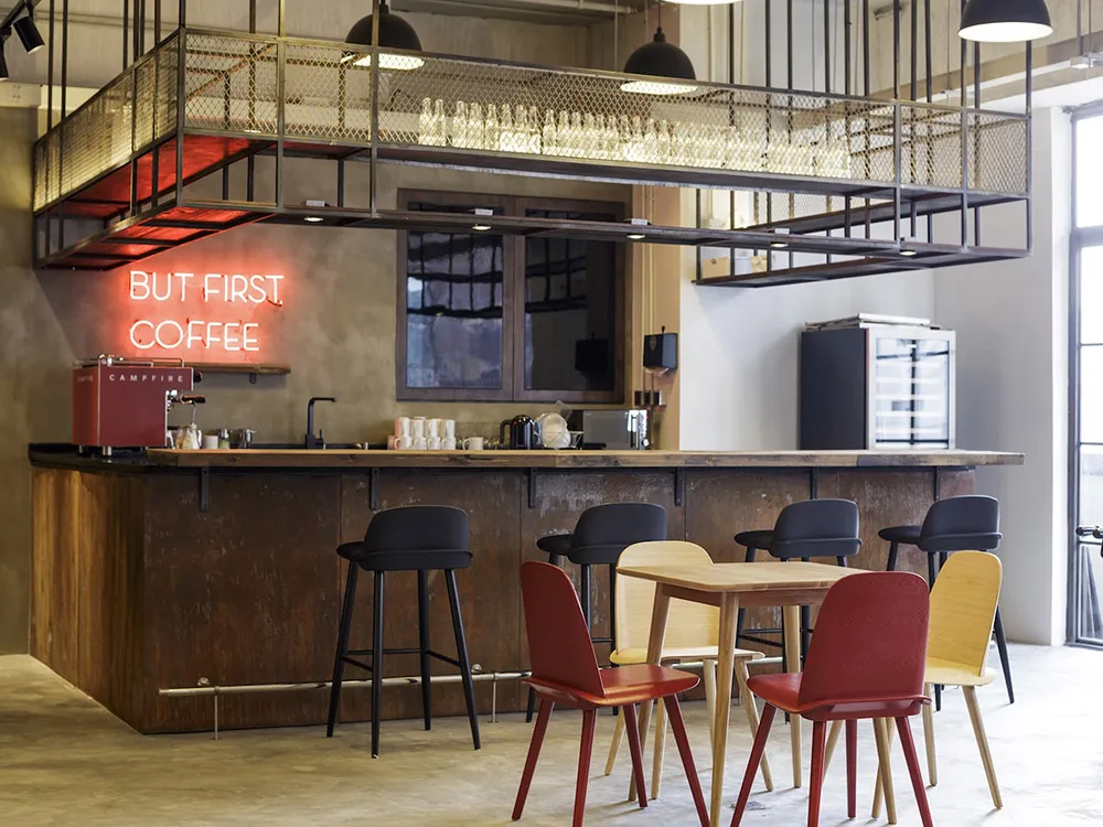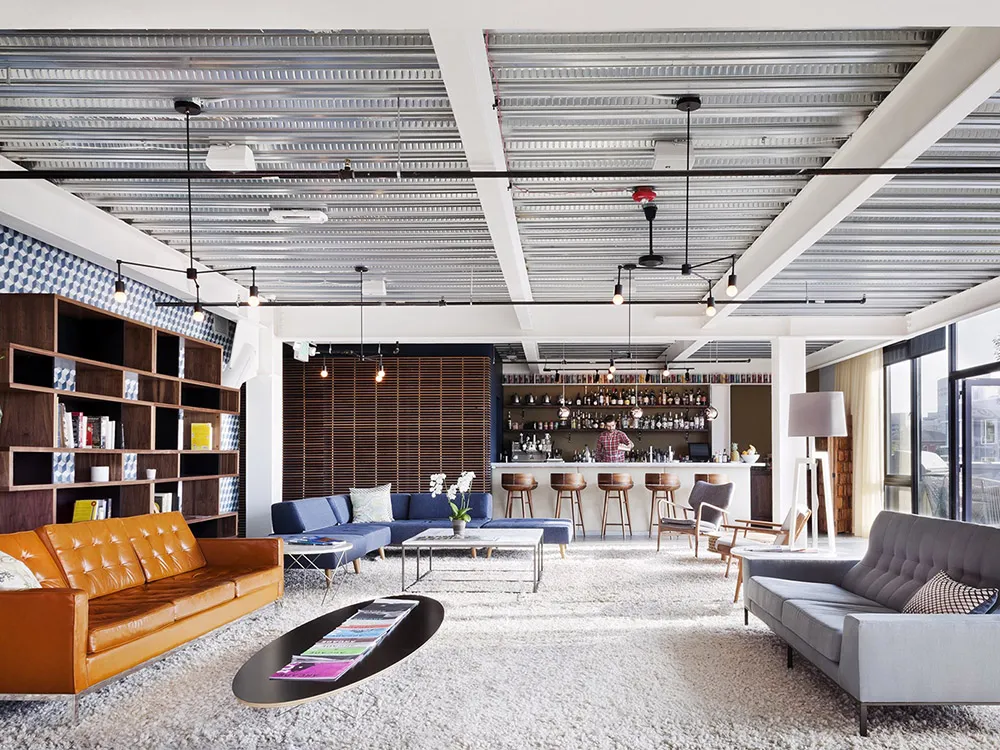 As we’ve covered recently, the new Hospitality Design Trend is about blending elements of the hotel, the sports club, and the café with the office. A great example of this is the luxury “Pro-working” space provider Fora, which takes the best parts of the hotel experience and applies those to coworking spaces. Each of their locations includes a restaurant, a members’ club, a yoga studio, shower rooms and more; they even train staff at a renowned hospitality school in Lausanne, Switzerland. Everybody working there feels looked after, and this raises wellbeing greatly.