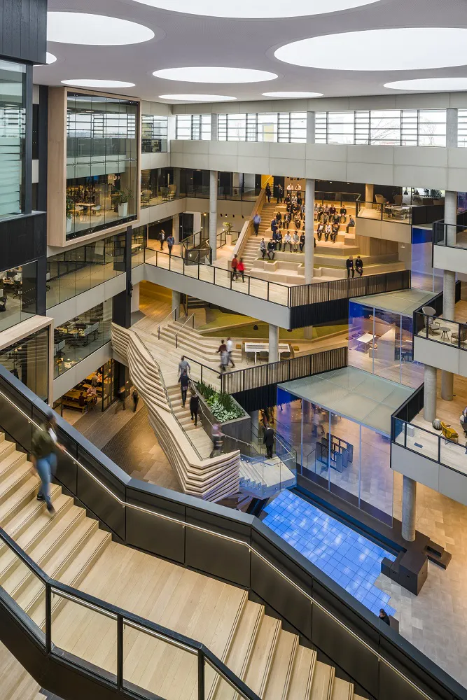 The design team at Gensler involved experts from various departments, including landscape architects and retail designers, to create a human-centric environment that caters to the diverse needs and interactions of the employees. Bringing specialist knowledge from varying industries means the space goes further than providing a workspace, the island concept ensures the office is a hub which fosters chance encounters and purposeful collisions, encouraging spontaneous exchanges and knowledge sharing through an aesthetically stunning medium.