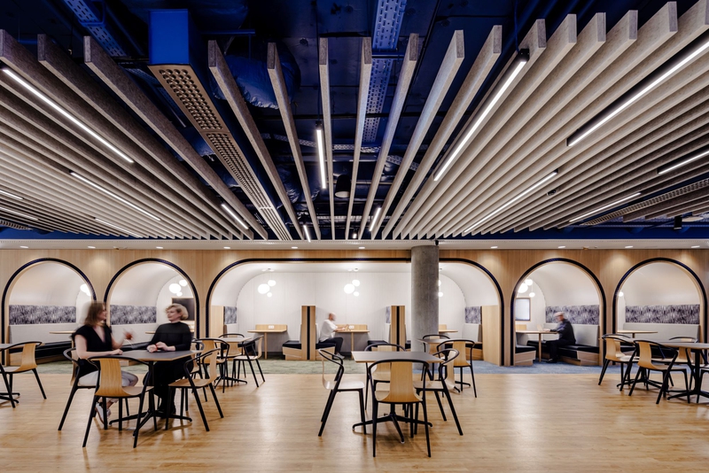 Clear from the outset, a defined vision for the new workspace was to create an environment that truly reflects Jacobs' ‘Employer of Choice’ philosophy. An approach which seeks to give quality support for a hybrid workforce, the principles of which emphasise choice and flexibility, blending remote and in-person work in a way which supports each employee’s unique needs. The overarching concept was to support this flexibility with a variety of workstyles and activities, while serving as a magnetizing hub for team culture, the promotion of learning, and the delivery of exceptional outcomes for Jacobs’ clients.