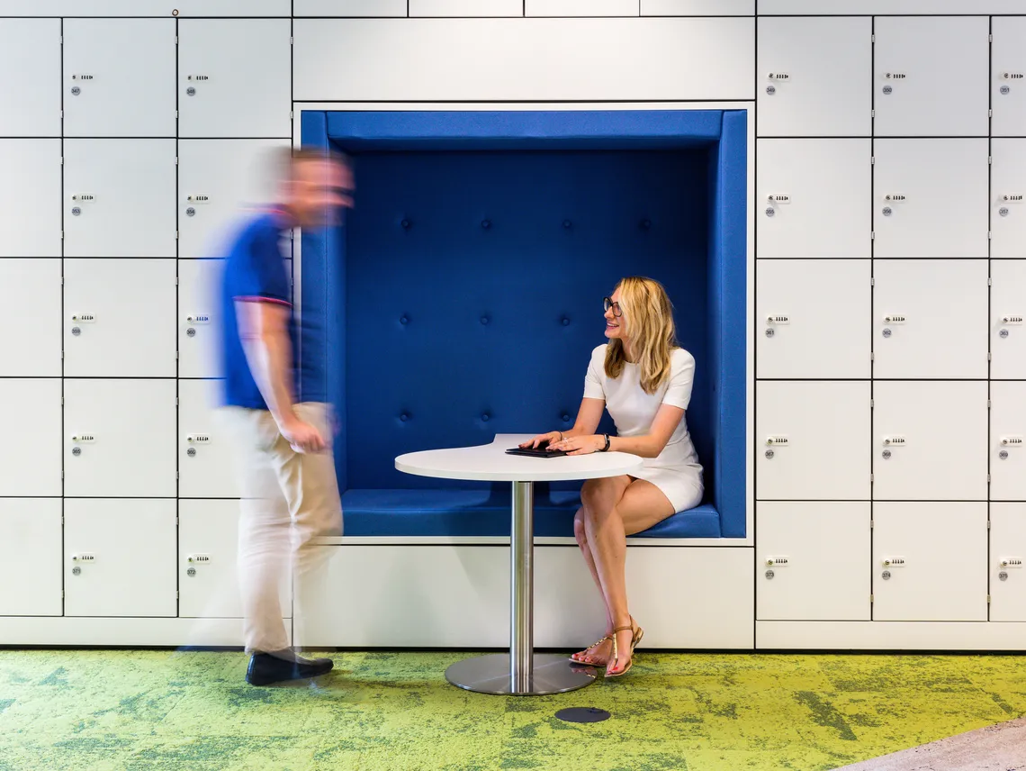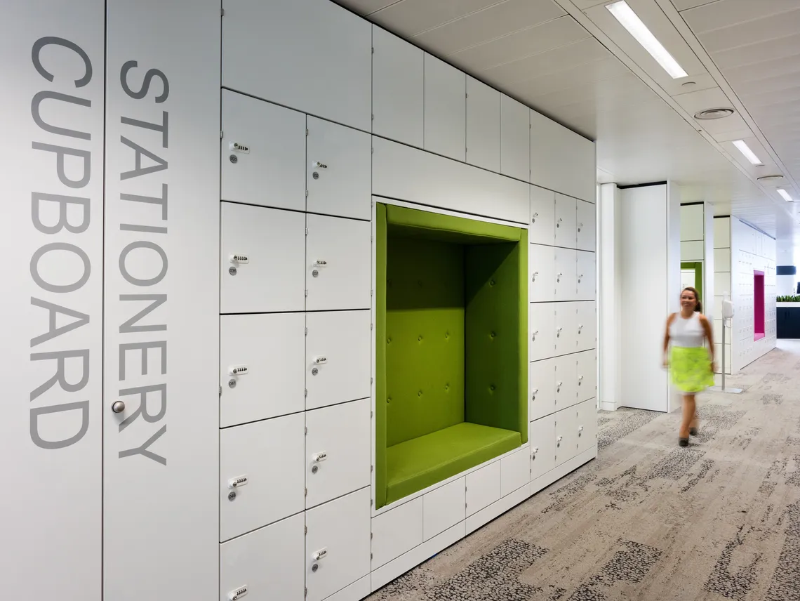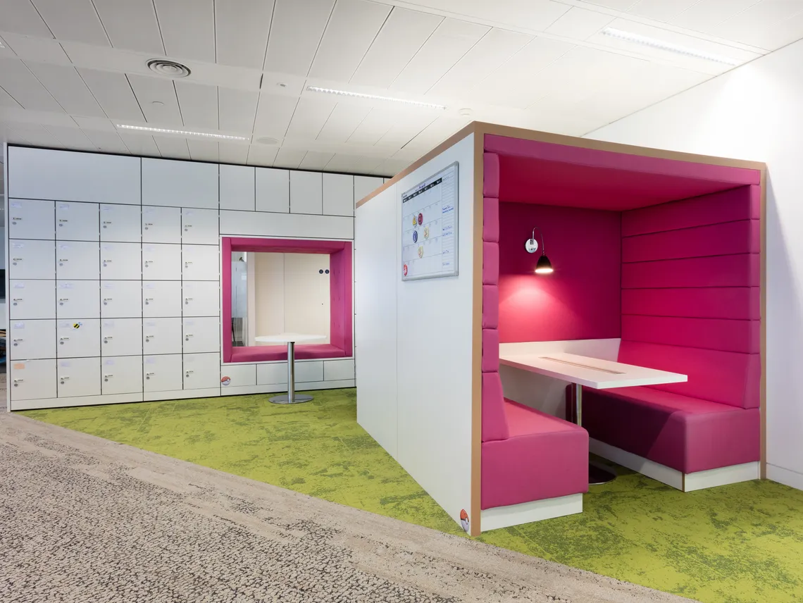 Il était essentiel de créer un choix d'espaces multi-usage ainsi des Railway Carriages ont été installées comme endroit où collaborer et être créatif et des assises Snugglestor ont été intégrées dans des Storagewalls et des rangées de HotLockers comme endroit où se concentrer et se détendre. Comme les designers de Peldon Rose expliquent : "Le fait d'assembler des assises souples, des cabines où se retirer et de plus petites cabines pour se concentrer dans l'espace principal des bureaux et dans la zone des casiers aide à rompre les contraintes d'un bureau traditionnel et donne un espace entièrement utilisable."