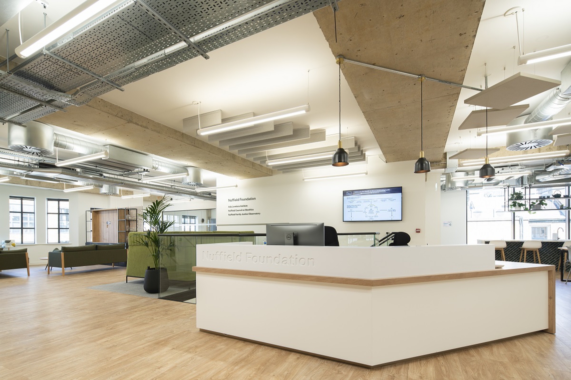 Nuffield Foundation researches and works towards great social advancements in education, welfare, and justice. It partnered with Peldon Rose to design and build an advancement in their workplace experience, the product, a softly industrial and uniquely flexible space. The challenge for Peldon Rose was to design an office which could function as multiple platforms -from seminars and research talks to focused spaces and private meetings. In concentrating on the targeted adaptability of the space, using both new and existing materials and considering employee needs, the workplace is a modern and highly functional environment.