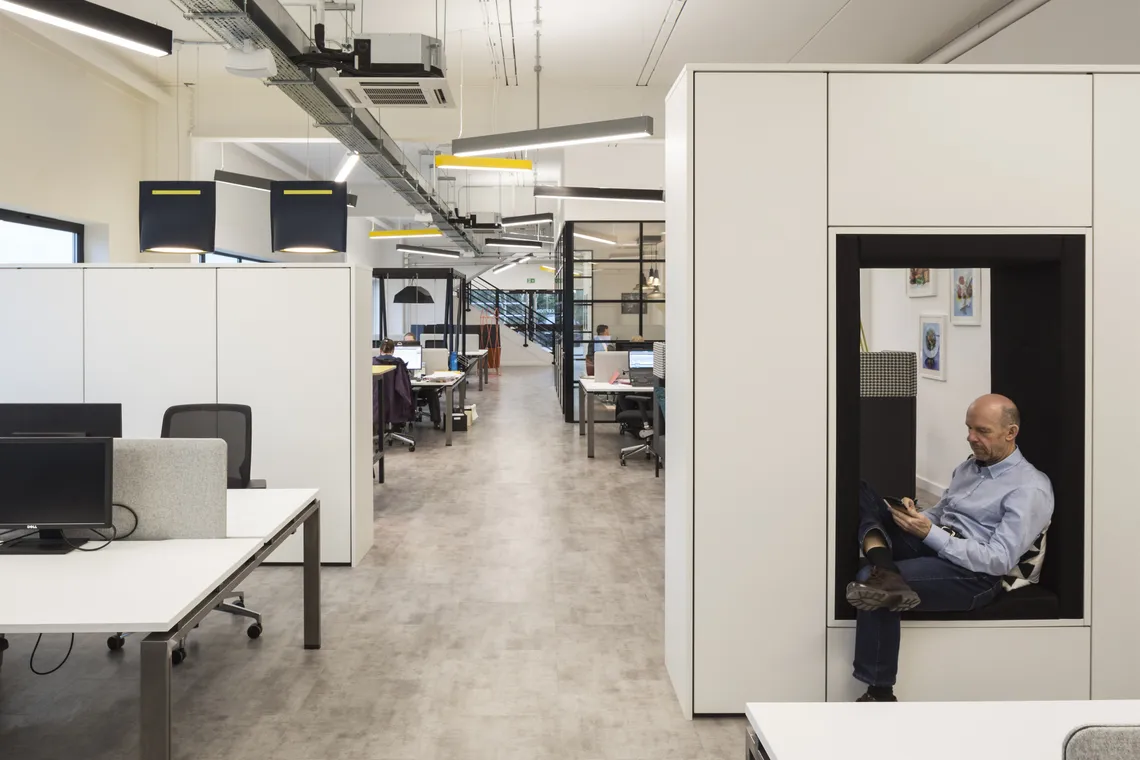 La directrice de Proper Food & Drinks Company, gemma Haaris dit : "L'aménagement final a dépassé nos attentes et a été merveilleusement arrangé. Ensemble, nous avons réussi à créer un des espaces les plus à la pointe pour choyer un équipe créative et motivée dans le pays." Ce sont des bureaux modernes avec un grand choix d'espaces de travail pour répondre au besoin de chaque employé ; mais aussi des bureaux conviviaux et confortables offrant des coussins et des canapés doux pour lorsque vous avez besoin de décompressé.