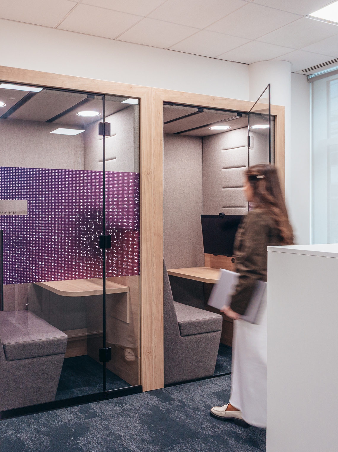Providing colleagues with more choice and variety of work settings was the intent with the furniture choice within the space, and within that there was the requirement for private workstations. Therefore booths are paramount in being an individual focused space, away from any distractions.