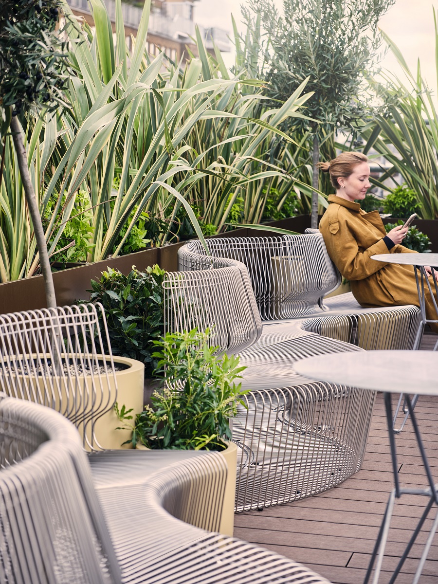 The Recharge Room to enjoy an atmospheric escape. The Oxygen Room for a boost whilst connecting with nature. The Café in olive yellow, cue that much-needed cuppa! Even a courtyard so employees can meet and work in the open inspired by the outdoors.