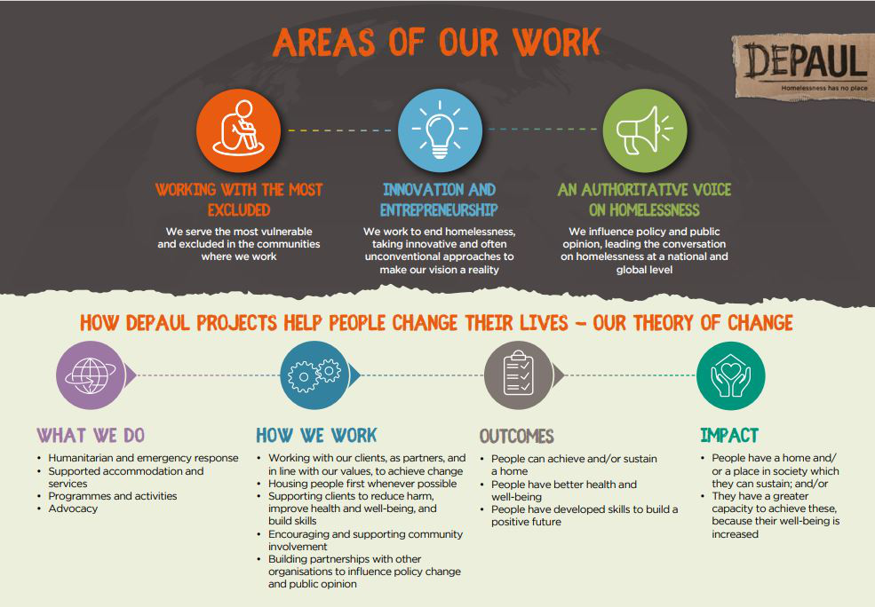 Depaul now manage over 80 different projects internationally providing shelter, food, medical care, and a place of safety for over 23,500 individuals each year. They provide support through three areas of work: