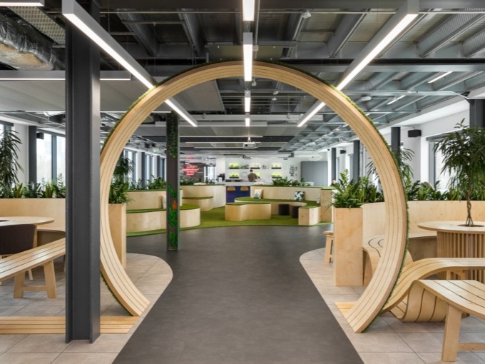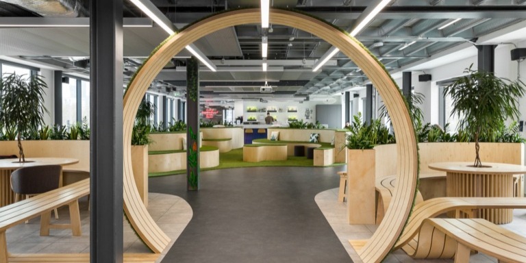 The new park-inspired workspace was designed by Oktra, who worked alongside Incube to create a unique design using a 'city park' look to create a jouney for visitors within the new office.