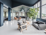 With a nod towards residential design, a tactile material palette has been used, layered with lush greenery, local art pieces and a diverse collection of Carolyn's personal interior touches. Black metal glazed partitions and exposed concrete flooring provides a stunning contrast.