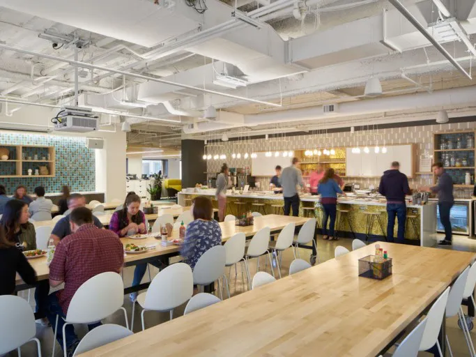 Front of house spaces have been considered as important as the back of house spaces and a thoughtful kitchen prep space has been created with a terrific view. As an integral part of the aesthetic, the art program was also developed as an expression of Checkr's values and culture, featuring local artists expressing their connection to the San Francisco Bay area and prison artists to underscore their commitment to authenticity.