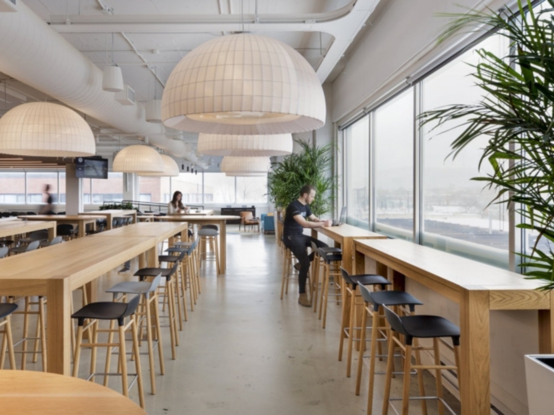 Software company Element AI have recently moved into their new 65,000 square ft office in Montreal, Canada. Designed around 3 themes: Montreal, the democratization of artificial intelligence (AI), and the accommodation and support of Element AI's unique culture, the primary goal of this project was to demonstrate the contrast between humans and technology - turning human thoughts and ideas into computer intelligence.