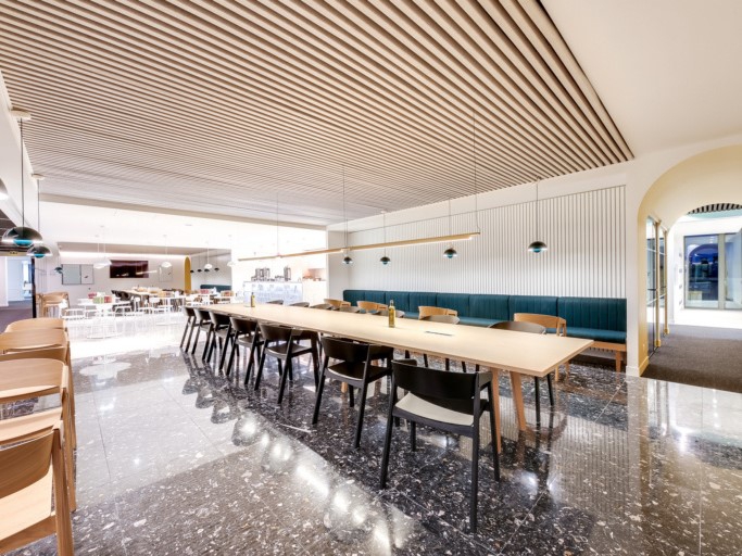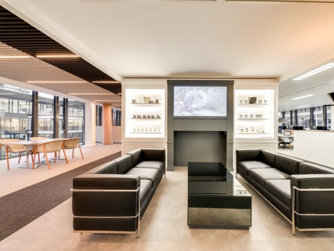 Estée Lauder's new workspace offers the employees a flexible working environment with a variety of different working areas. The change of headquarters has involved the company shifting away from the Haussmann style and the individual office, and bringing staff together into a flex-office, breaking down the barriers. Once inside, the employee enters a luxurious, bright and connected environment.