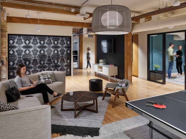 One element to this was developing a neighbourhood planning strategy, focusing on working styles instead of departments to develop a space allowing for more flexibility and collaboration. The result is an open, modern office that tells a story of world travel and fosters lasting employee bonds.
