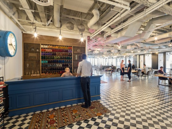 The office space spans two floors, incorporating informal meeting areas, lounges, hot desks, kitchens, private offices and phonebooths across 4,100 sq metres. JRA collaborated closely with Mindspace to create a design true to its signature boutique hospitality style, reflecting the cutting-edge style and vibrancy of the East London area.