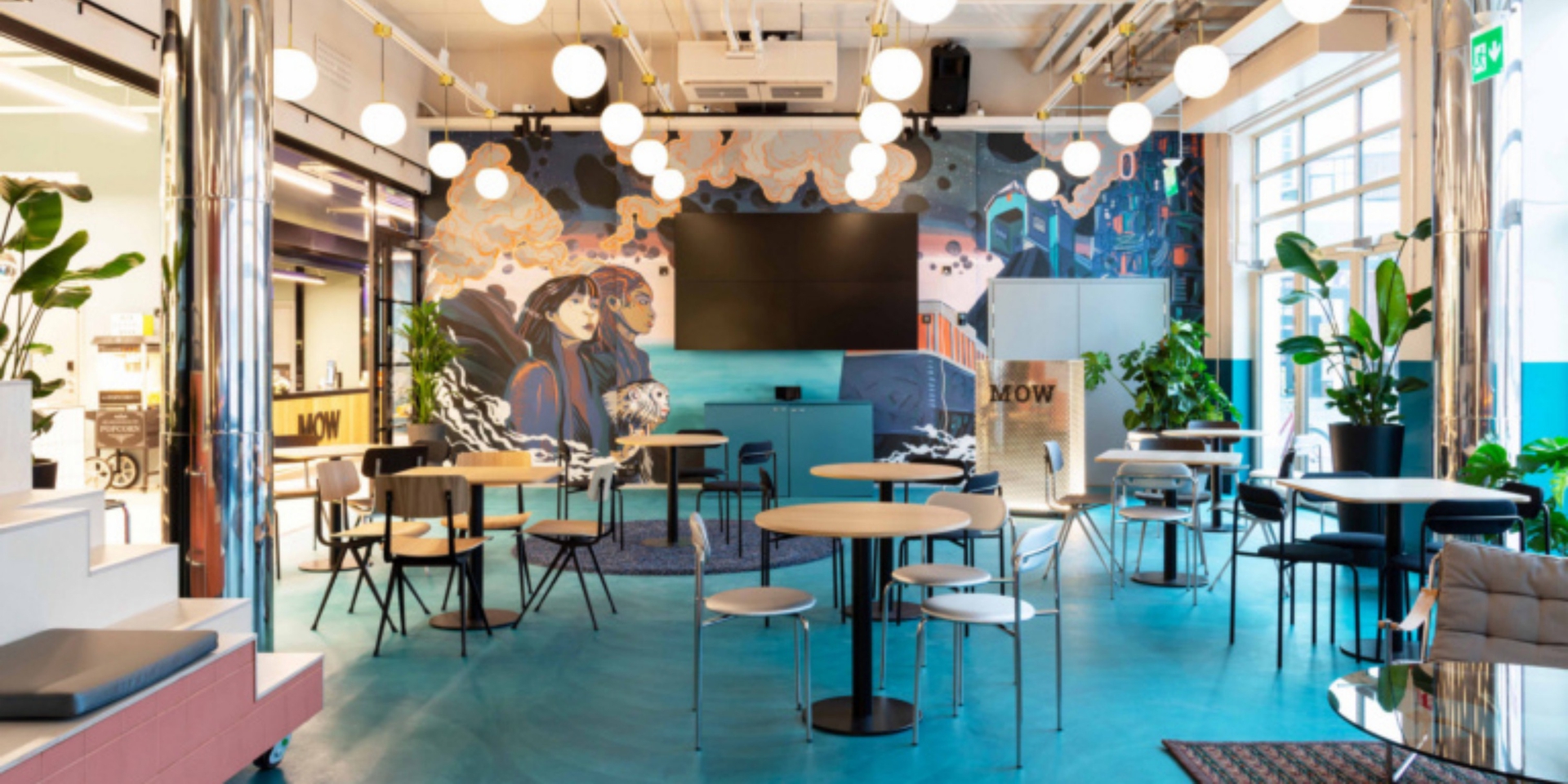 MOW's Supernova coworking offices in Tampere, Finland were designed by Mint & More Creative. A fun-loving coworking hub focused on the future of work.