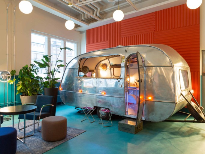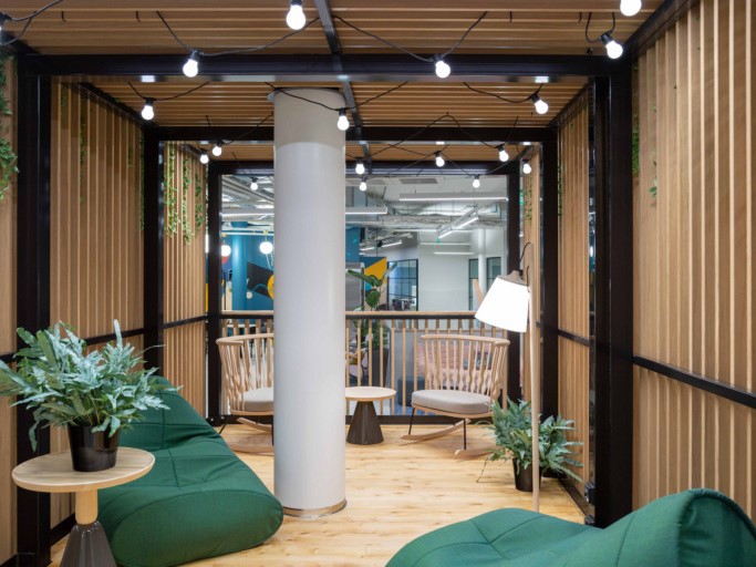 The spaces are experiential and provide personality whilst being functional. Furthermore, environmental, socio-cultural and financial sustainability were also thought through during the design process. The building was designed according to the BREEAM certification and designers chose environmentally friendly materials such as Durat composite, Econyl recycled nylon flooring and used vintage furniture, locally produced work and young entrepreneurs to create this unique and sustainable workplace.