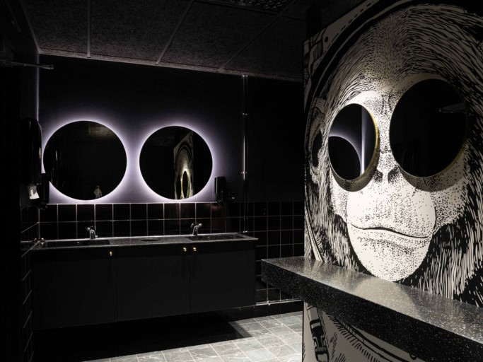 At MOW Supernova, not even the bathrooms have been overlooked. Diversely accessible with an attractive design, one set incorporates a galaxy theme with a space chimpanzee, while the others have colourful themes, designed to suit a variety of moods.