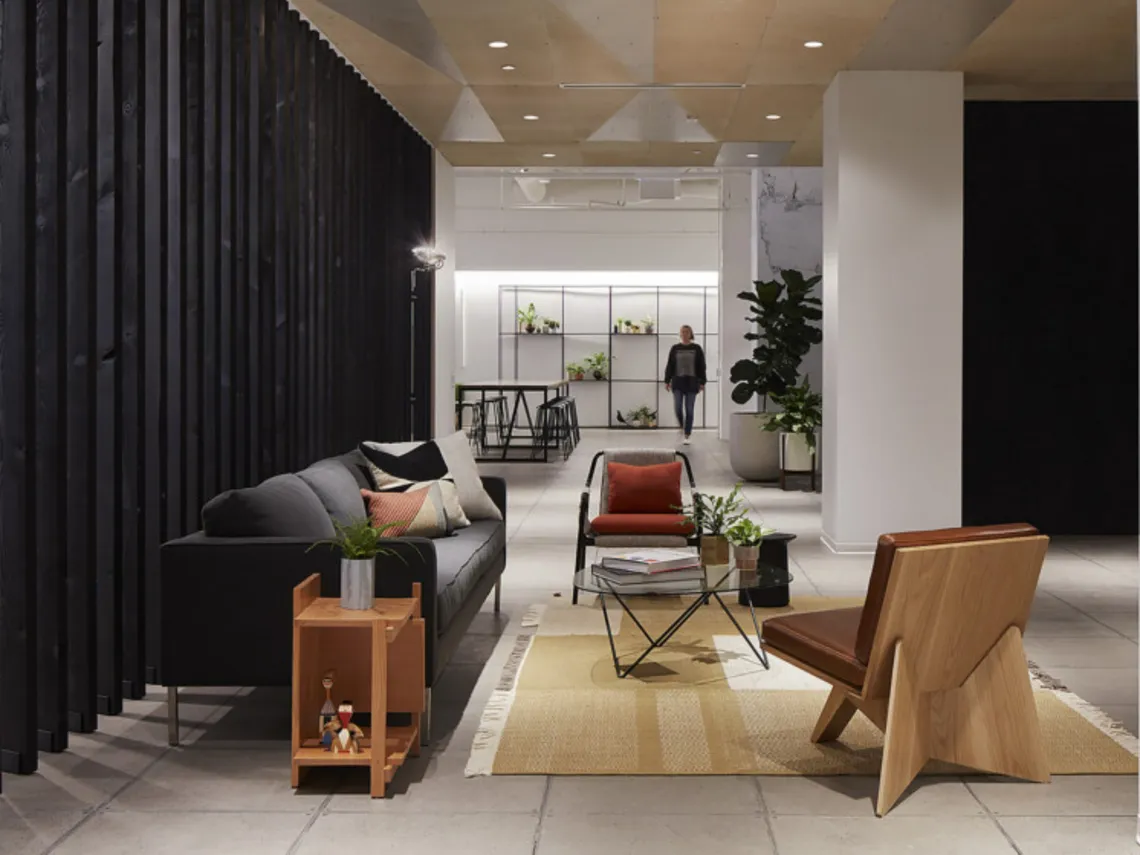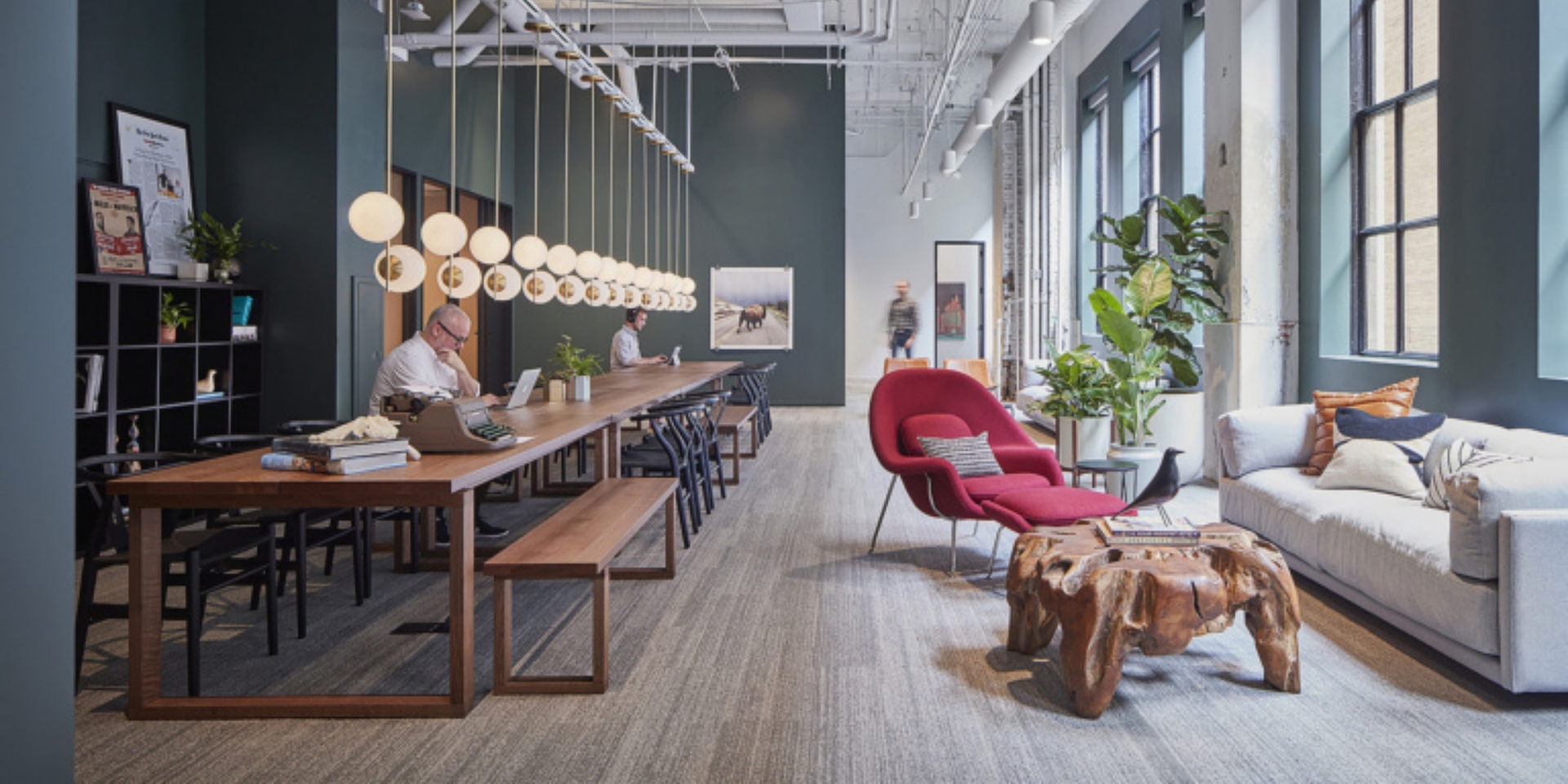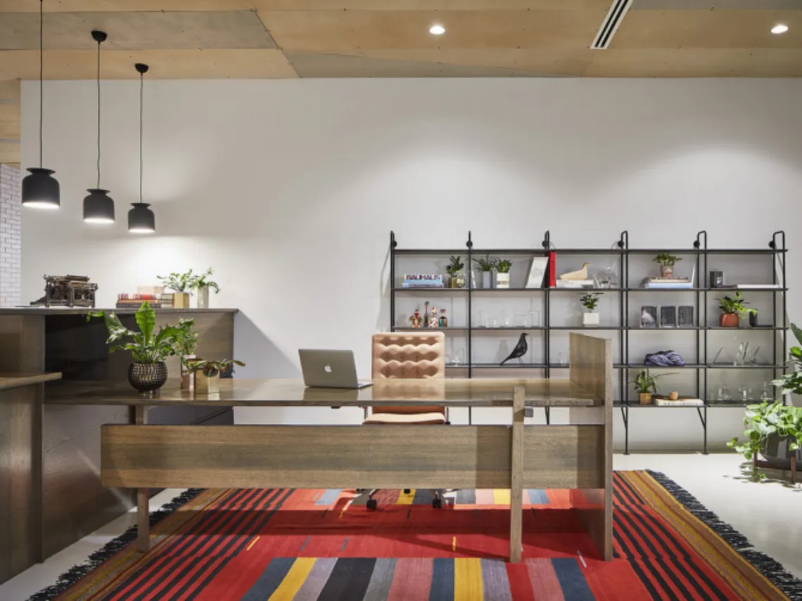 The company exists at the overlap of technology and humanity, with their software transforming data into language. Areas where activities overlap are therefore celebrated in the workplace and the Chicago Bauhaus style was used as the aesthetic driver to give a local inspiration, but also to speak to innovation and technological leadership.