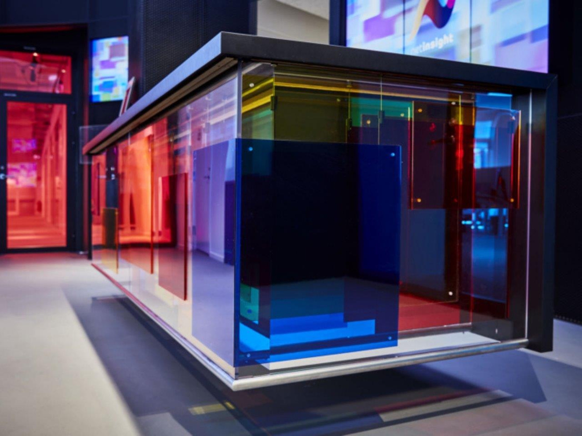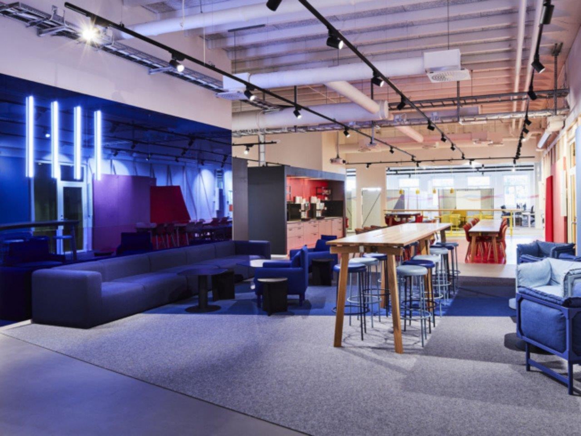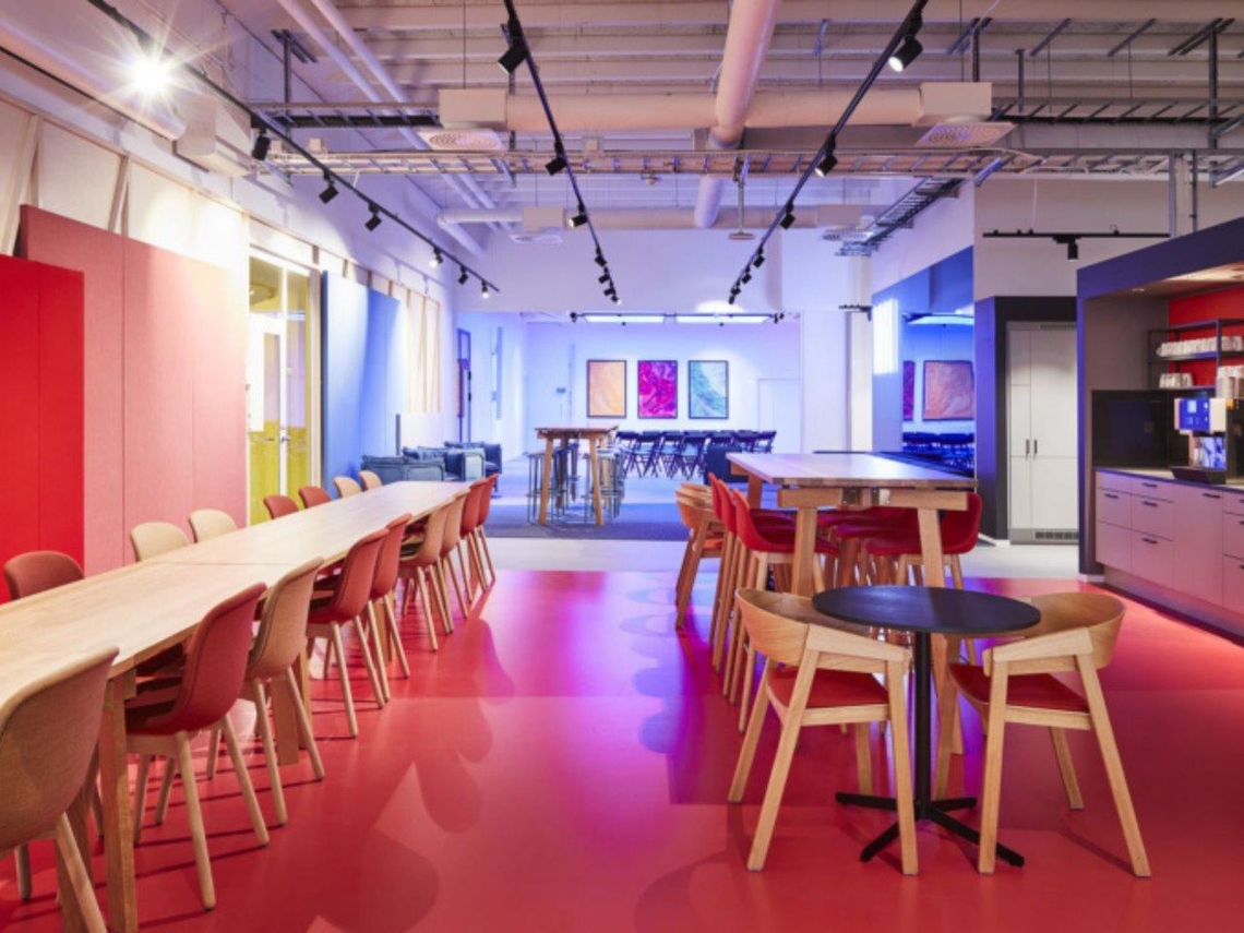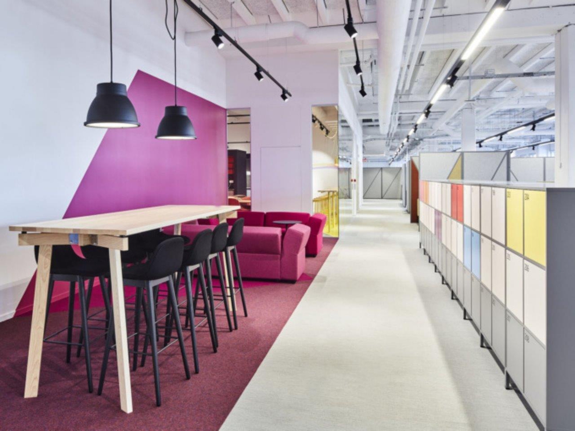 The interior design concept is influenced by TV studios, with environments built from a camera angle perspective, with five-metre-high ceilings, fully optimised for those who work there.