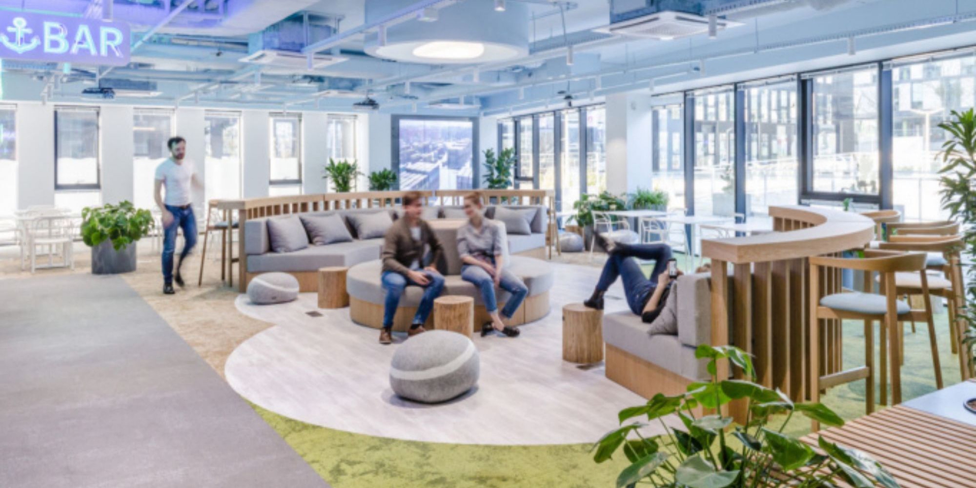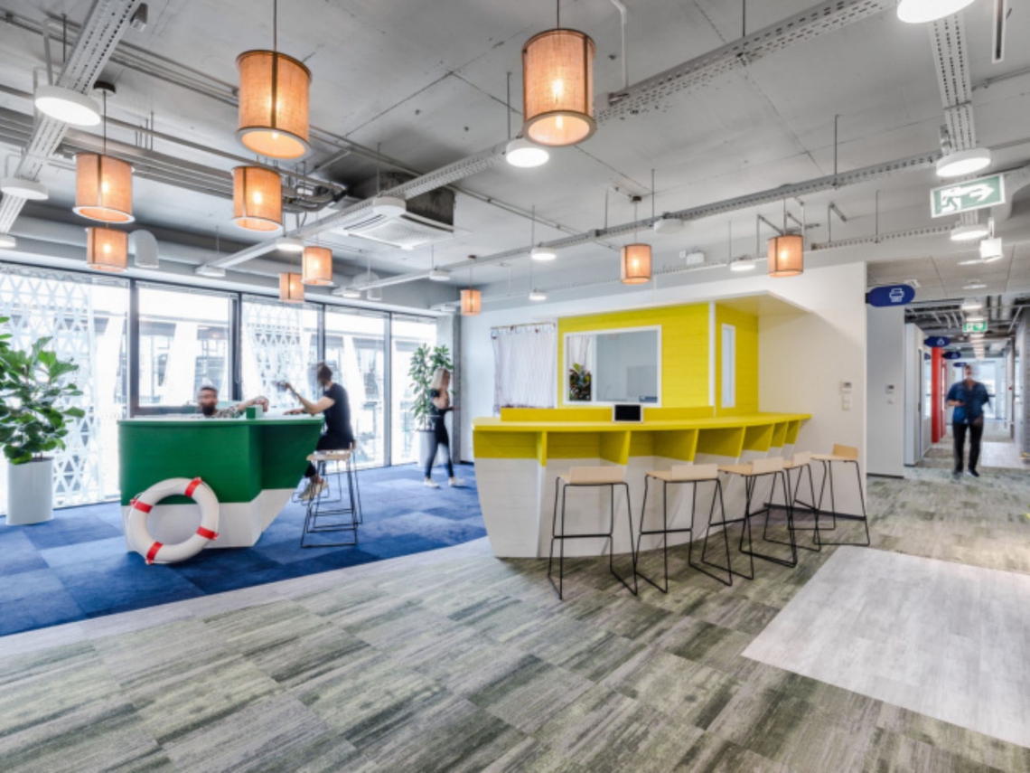 The narrative of the office is built on shipyard-inspired elements such as containers, ‘import’ and ‘export’ meeting rooms, and zones reminiscent of a ship’s bow and stern.