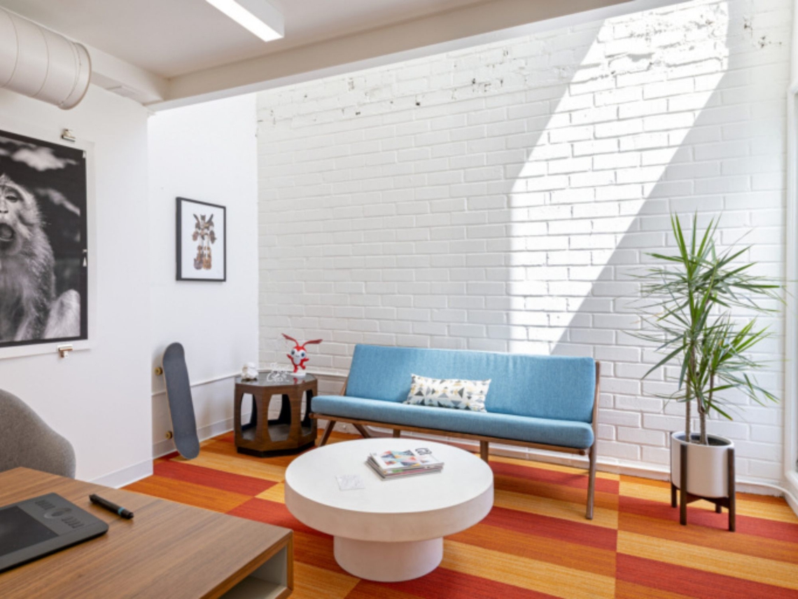 The program brief needed to address dedicated work areas for 30 animators, 6 producers with 4 private offices, 3 editing suites, 2 conference rooms, 3 new restrooms, a large and high clear area for a green screen mockup shoot area, a central pantry, a lounge and a flexible workspace.