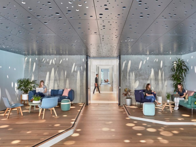 Central to the design concept was the idea that, like with every work project and every hike in the wilderness, there should be scenic surprises - a process of discovery. At Slack's headquarters, you turn a conrer and there is a stunning design feature such as a wall installation replicating the topography of Lake Tahoe, or a starry night room. At every instance the beauty is a reward for effort, reinforcing the idea that those who venture away from their desk makes the most of their workday.