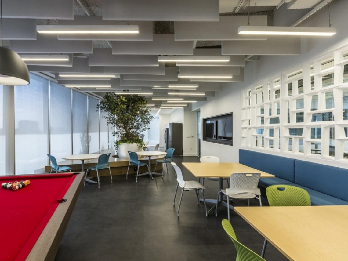 Chosen Interior designers Informov Architecture& Construction clearly appreciate effective employee engagement needs collaborative workspace. By utilising cobogos to create a visual permeability, light and sound can still travel through, yet it retains a sense of privacy for both sides. Much like Spacestor’s Palisades Grid, a semi-opaque divider enables functional flexibility with mid-century modernism and style.