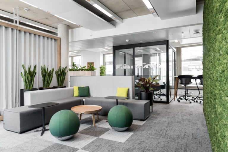 Sustainability is also of great importance in the office – not only in efficient space usage but also in choice of materials, the concept of biophilic design and the operation of the building. Focus on plant-based options in the internal café, reducing waste as well as the multiplied subsidy for public transport for all employees are initiatives to decrease the carbon footprint of the workforce significantly.