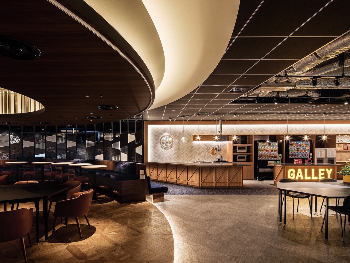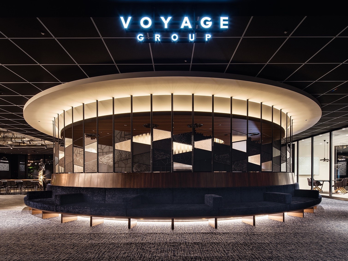 The workspace both embodies the group's corporate philosophy of "360-degree amazing" while also conveying a story of "voyage" - travel over the sea.