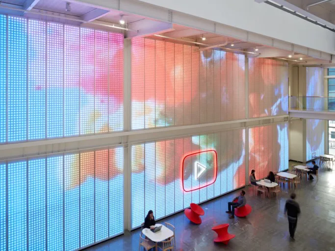 Occupying a building in San Bruno, California, previously housing the Gap's headquarters, YouTube quickly realised that its lobby was in dire need of an update. Congested and poor acoustics made it feel loud and chaotic, but equally important, the entrance was plain and didn't reflect the company's creative brand, or it's 2 billion user base.
