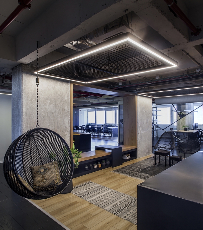 The anonymous company in question was previously resident in a space half the size of their new office, they decided that it was time for an upgrade and said that it was about time that they worked in “the coolest office in the city”. The new office space is housed within Israel’s first, and most famous, tower in the centre of Tel Aviv. Before Turman Romano undertook this unique challenge the space was boxy, cramped and lifeless. So the design studio set out to transform it into a sprawling open plan space by knocking down all of the unnecessary walls and creating an office which would bring a sense of mystery and fun to work day.