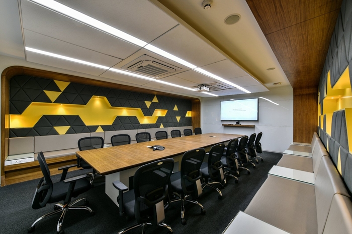 Building on the vision for a new, employee friendly atmosphere, the office also incorporates as much natural light in to the space as possible. With stunning terraced views that break up the monotony of the urban scene of Mumbai, there is sure to be a high level of employee satisfaction when working for this forward-thinking automotive manufacturer. Images from Office Snapshots