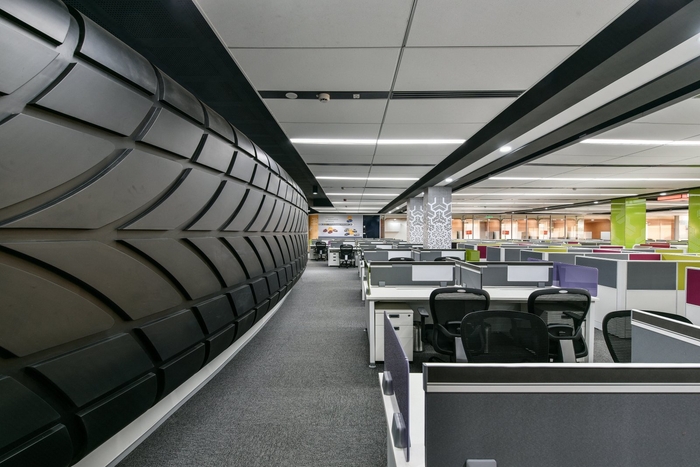 Inspired by the essence of the company itself, a successful automotive manufacturer, Tata uses ideas from road designs and car features to fully embrace its new futuristic, bespoke office space.