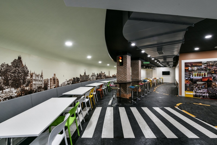 The cafeteria was designed with the famous “Marine Drive” and “Girgaon Chowpaty” in mind, with pictures of famous South Bombay landmarks adorning the walls. Taking inspiration from the beauty of India adds an element of home grown love to this international corporation.