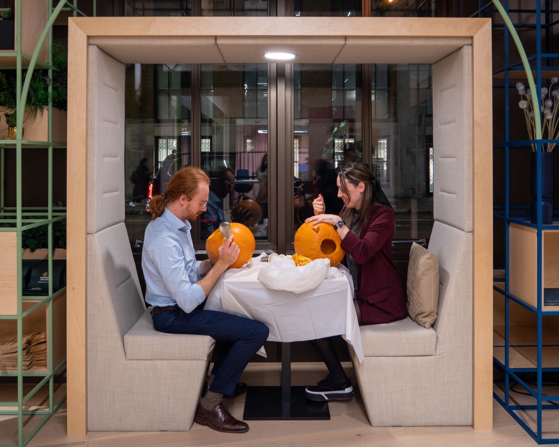 Pumpkins and Prosecco at our London Design Centre - a perfect blend of work and play, encouraging guests to step away from their desks and carve out time for a little fun and creativity!