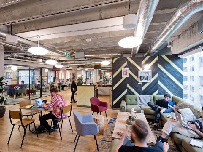 The rising popularity of coworking spaces has led to establish a unique interior aesthetic for the 'fourth space'. WeWork's spaces are a great representation of this design trend.